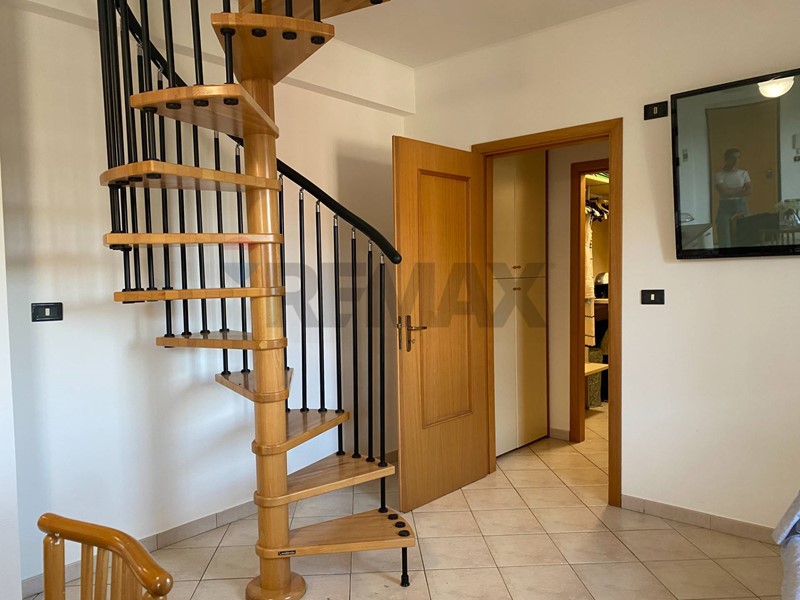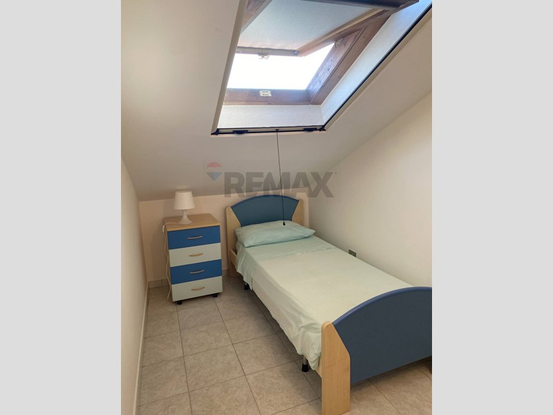 La mansarda da cui si accede da una scala a chiocciola ci porta alla mansarda composta da una camera matrimoniale, due camerette, bagno con doccia e un locale stanzino.