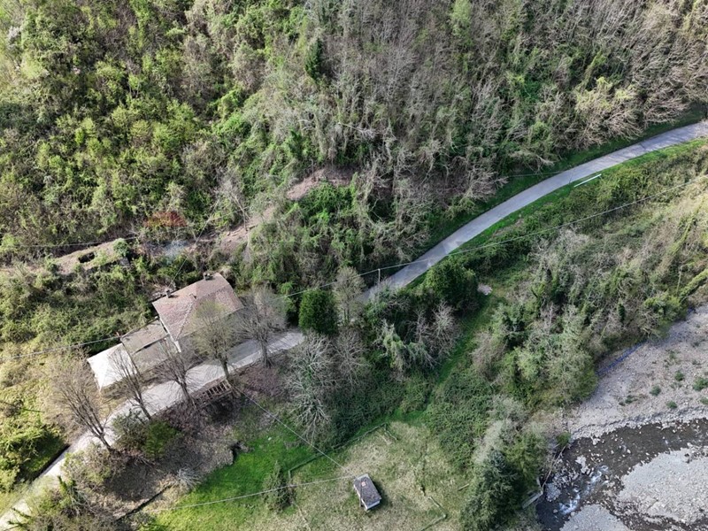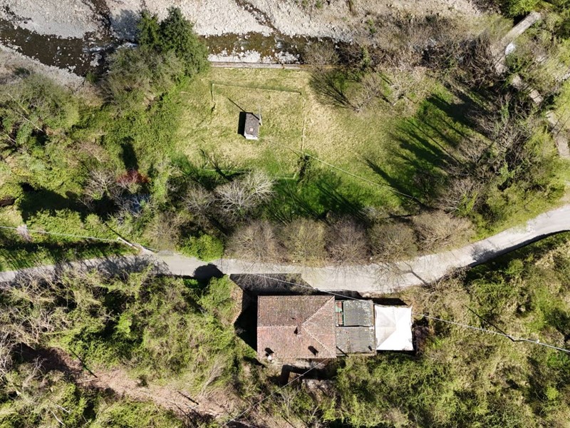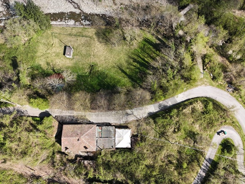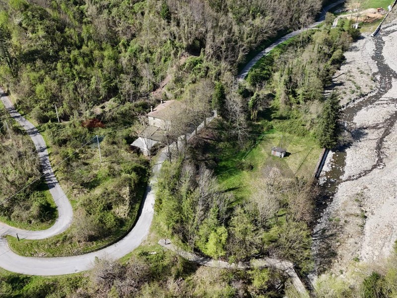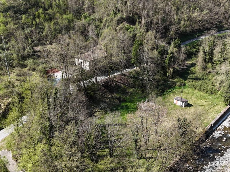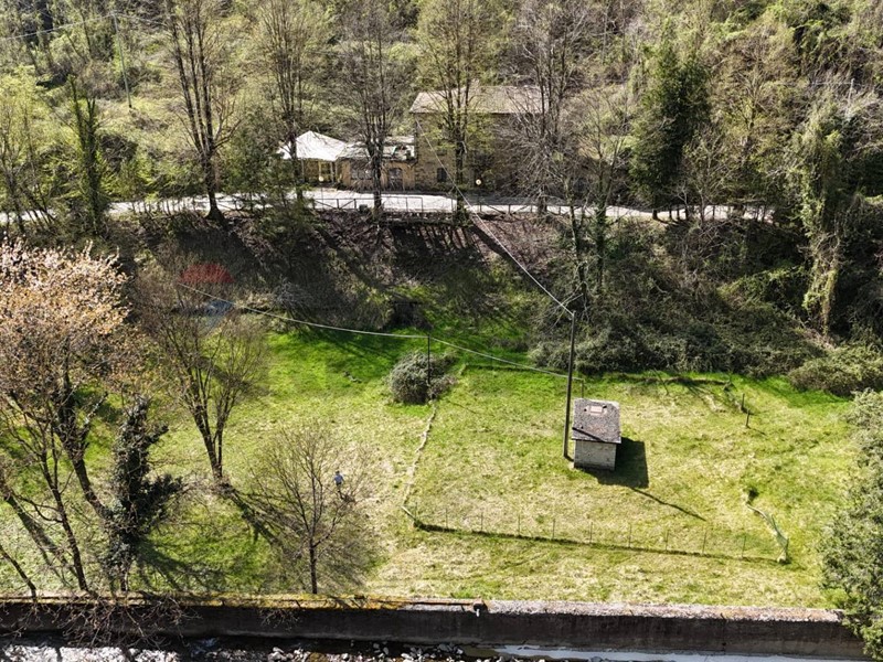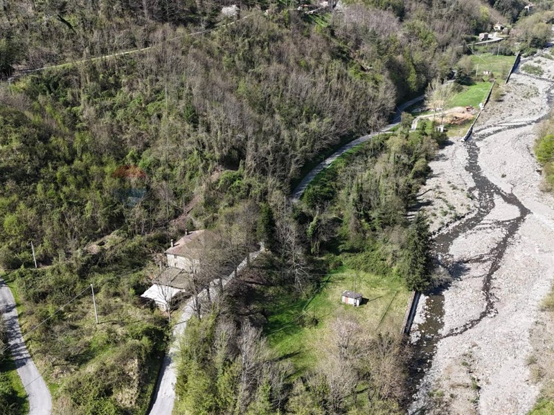 La proprietà si completa con un terreno di 25.600 mq, in gran parte boschivo, con una suggestiva area pianeggiante a prato che si affaccia sul torrente Corsonna.