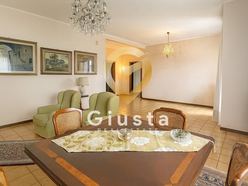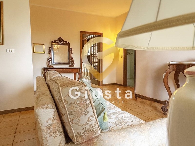Lingresso si apre su un luminoso salone doppio, impreziosito da arredi classici e lampadari che regalano un tocco di raffinatezza. Qui lo spazio è davvero generoso e permette di vivere pienamente la convivialità: pranzi in famiglia, cene con amici o semplicemente momenti di relax quotidiano.