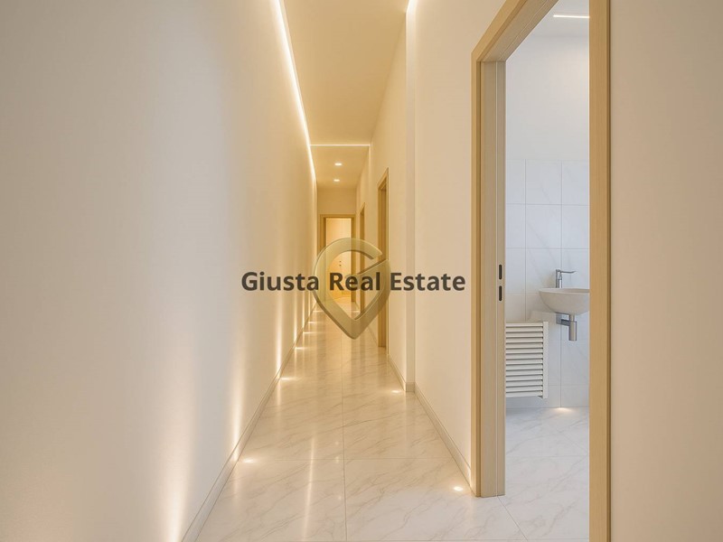 Un corridoio centrale accompagna nella scoperta degli ambienti, tutti caratterizzati da ampie finestre che donano luce naturale durante tutto il giorno.