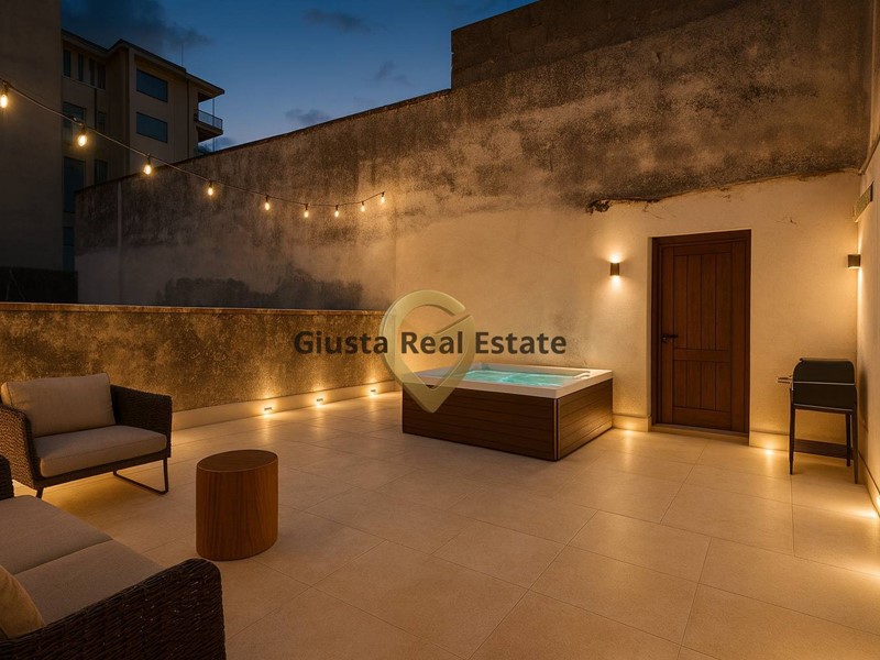 Al piano superiore, collegato internamente, un terrazzo panoramico di pari metratura regala privacy e spazio per creare una splendida area relax, una cucina estiva o un angolo verde in città.