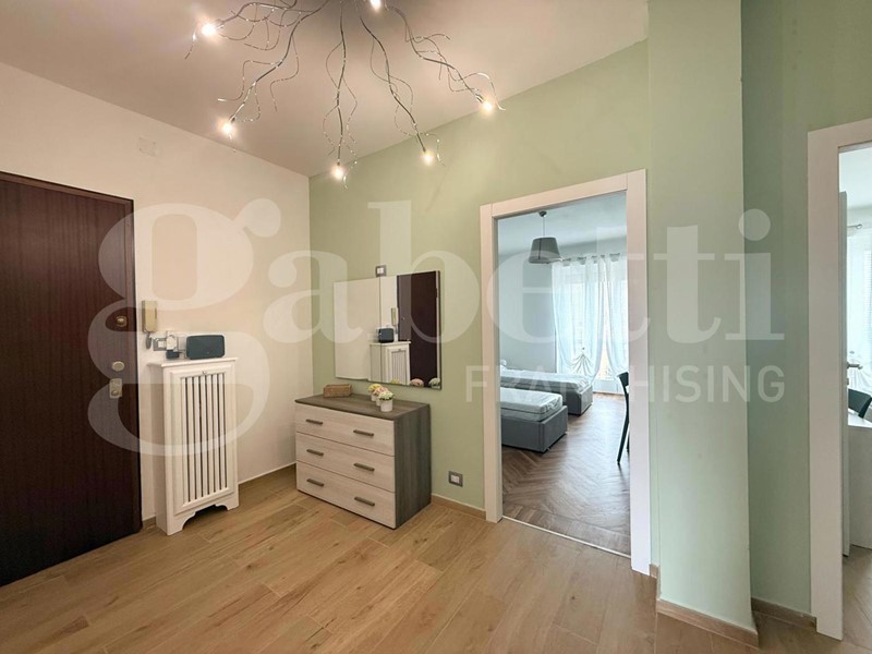 L'immobile è così composto: spazioso ingresso, soggiorno dotato di un maxi schermo TV perfetto per i momenti di relax, cucinotto e comodo balcone verandato. La cucina è già completa di tutto il necessario: piatti, bicchieri, posate, tazzine da caffè, caffettiera, tazze mug e un set di pentole, per farti sentire subito a casa senza dover pensare a nulla.