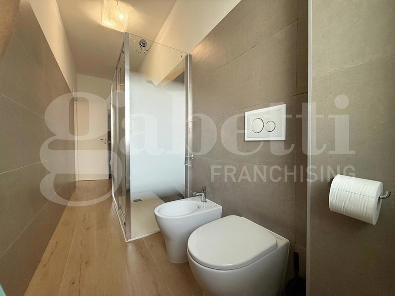 Anche il bagno è pensato per offrire il massimo comfort: dispone di una doccia extra large, doppio lavandino, wc, bidet e lavatrice, il tutto in uno stile moderno e funzionale, ideale per una comoda vita in condivisione.