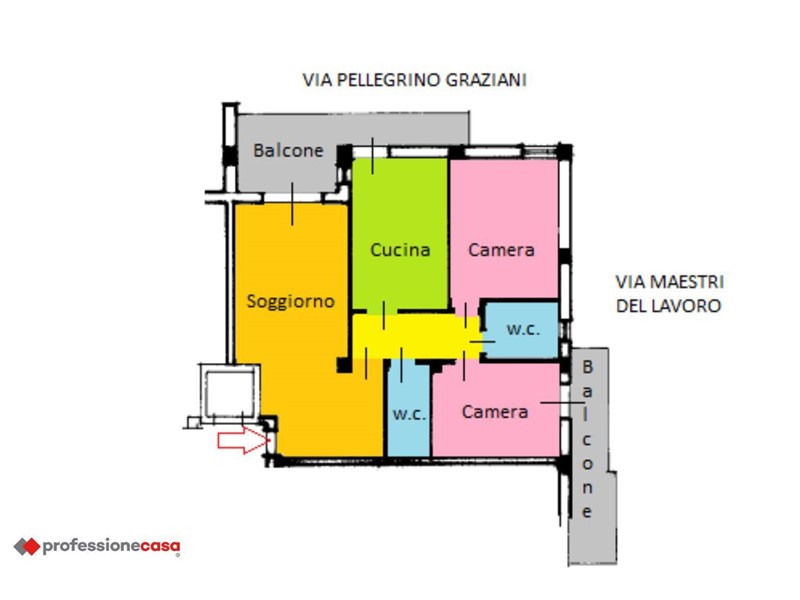 L'immobile si distingue per la sua esposizione angolare (con due balconi) che garantisce eccellente luminosità e una piacevole ventilazione naturale durante tutto il giorno.