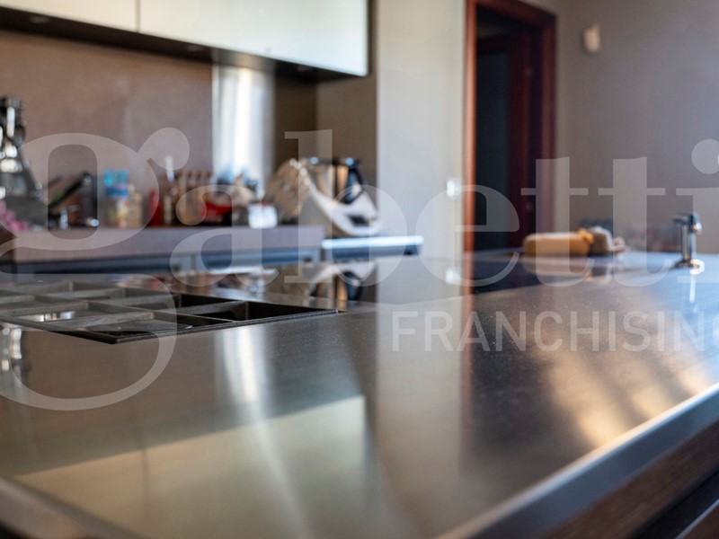 Il soggiorno è spazioso e luminoso, grazie all'uscita sulla veranda di circa 15 mq; adiacente la cucina abitabile e con penisola, ben strutturata in chiave moderna; questi due ambienti garantiscono spazi utili alla convivialità in modo accogliente e funzionale.