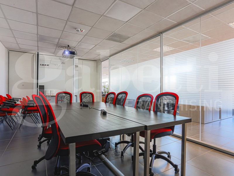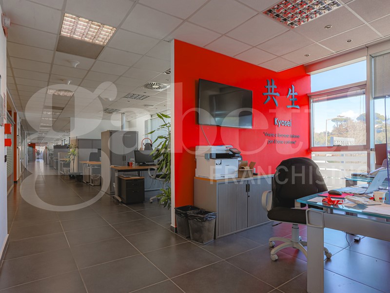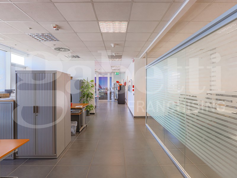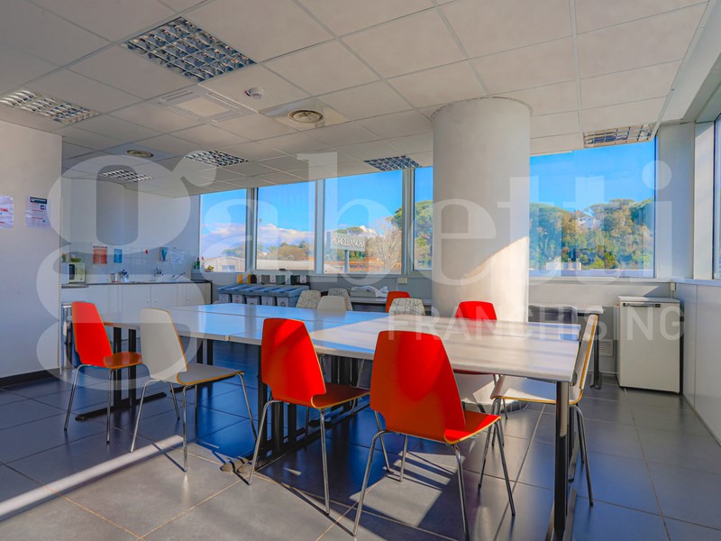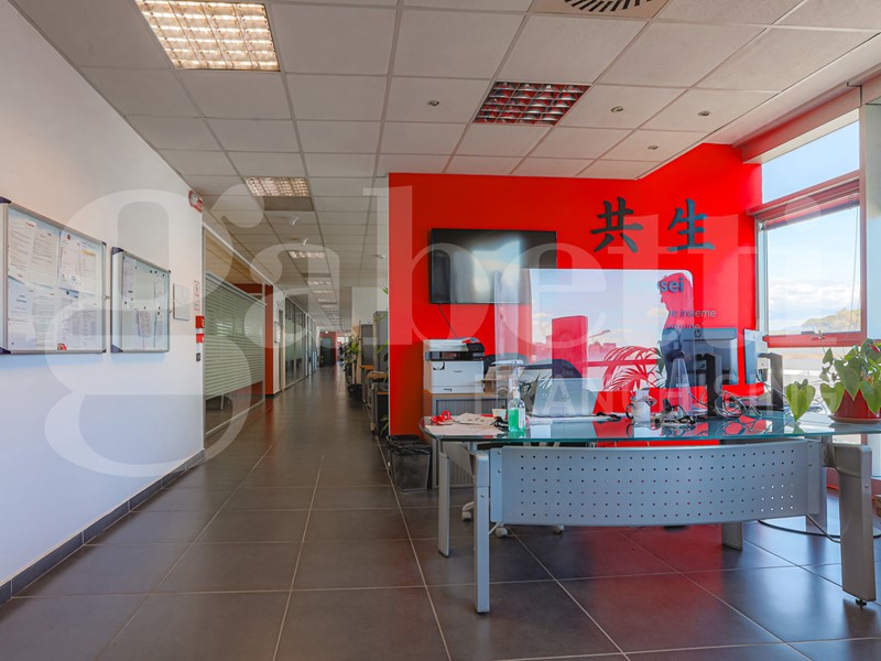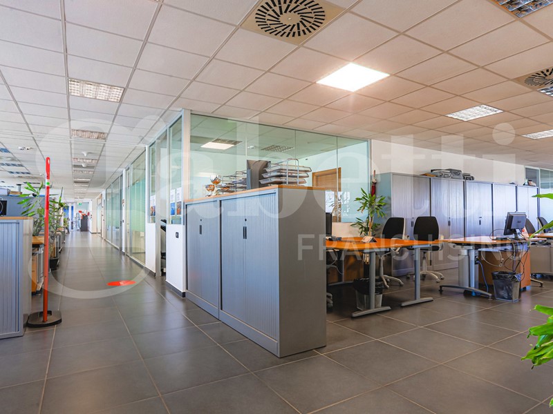 L'ufficio completo di tutti gli arredi, comprende un ampio open space al secondo piano, di circa 830 mq (attualmente configurato con sale riunioni e circa 70 postazioni di lavoro e servizi); e un ufficio open space di circa 280 mq, al primo piamo, dotato di aerea ristoro e servizi.