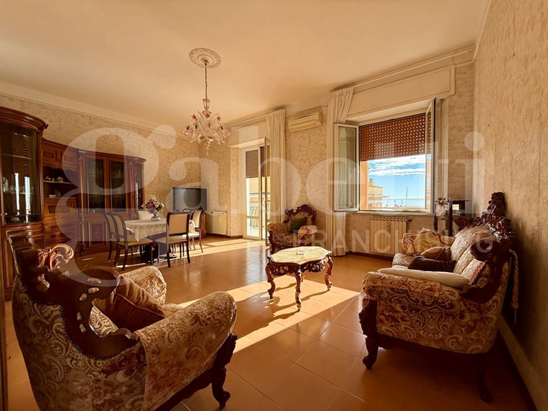 La casa internamente è composta da un doppio salone, cucina abitabile, tre stanze e doppi servizi. La tripla esposizione le garantisce una luminosità costante durante tutto l'arco della giornata, creando un'atmosfera calda e confortevole in ogni ambiente. Il terrazzo di 33 mq, con una vista panoramica sul mare e sulla città, aggiunge un tocco di fascino e rende l'abitazione ancora più suggestiva. La posizione dell'immobile è unica, con i servizi essenziali a pochi passi e l'opportunità di avere la spiaggia di Vindicio ad 1 km.
