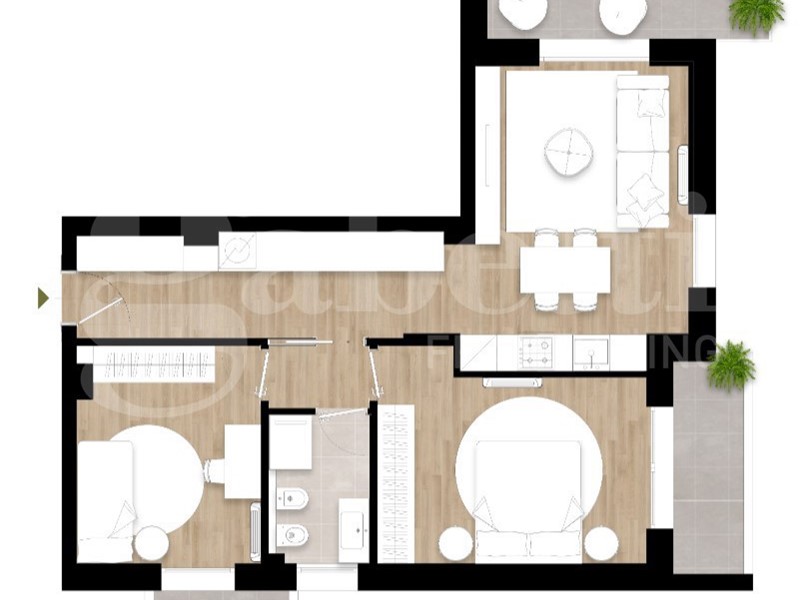 Vivi il futuro nel cuore di Navile Two Palace nasce dalla riqualificazione dell'ex sede ENEA in Via Martiri di Monte Sole. Un progetto moderno in classe energetica A4 che unisce spazi luminosi, verde e ottimi collegamenti con il centro città. Consegna Dicembre 2026. Un progetto che valorizza il quartiere Two Palace è un esempio concreto di rigenerazione urbana che restituisce valore e nuova vita a un edificio storico di Navile, quartiere in pieno sviluppo. Un complesso pensato per offrire abitazioni moderne ed efficienti di diverse metrature, con posti auto, cantine, spazi comuni curati e un parco verde. Il contesto è tranquillo e residenziale, ma perfettamente collegato al centro città e a solo un paio di km dalla Stazione Centrale, dall'aeroporto e dalla tangenziale. L'appartamento B8 Situato al secondo piano, questo trilocale di 84 mq si distingue per l'ampio terrazzo e l'esposizione Sud-Est, che garantisce luce naturale durante tutto il giorno. L'ingresso si apre su un lungo corridoio che conduce al salotto con cucina open space e affaccio diretto sul terrazzo principale. Una soluzione ideale per chi desidera ambienti interni luminosi e spazi esterni per momenti di relax. L'anticamera separa la zona giorno dalla zona notte, composta da camera padronale e seconda camera, entrambe con accesso a un secondo terrazzo, oltre a un bagno.