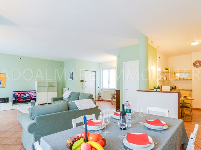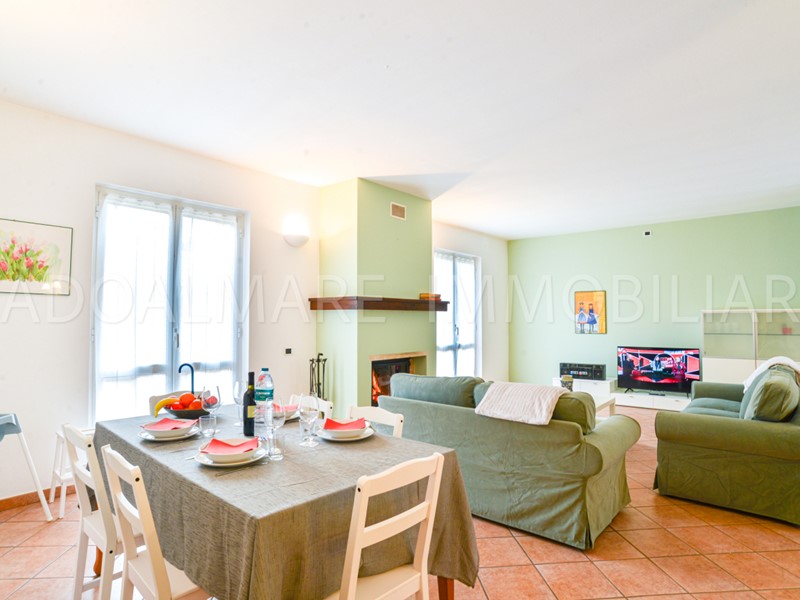 Al piano principale si sviluppa una ampia e luminosa zona giorno con cucina a vista, ideale per pranzi e momenti di convivialità in famiglia o con amici. Dal soggiorno si accede direttamente a un grande terrazzo, perfetto per cene all’aperto e serate sotto le stelle.