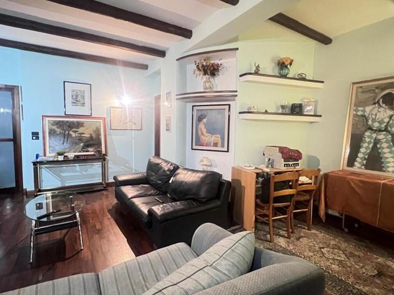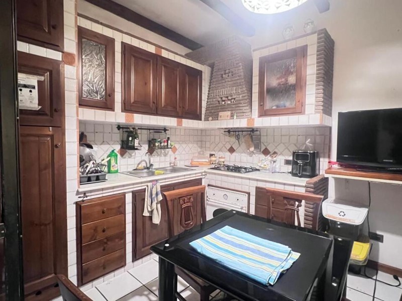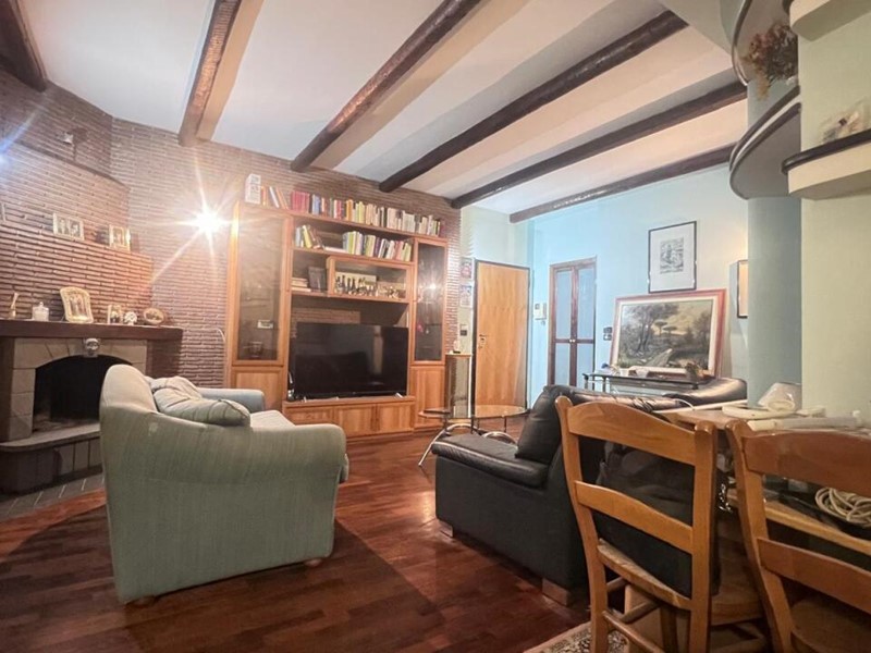 Ingresso su ampio salone con elegante camino e doppia apertura (finestra + porta) che conduce a un bel balcone vivibile, disimpegno che introduce alla zona notte con due camere da letto, cucina con caratteristica cucina in muratura, bagno dotato di vasca idromassaggio, lavanderia esterna. Posto auto di pertinenza.