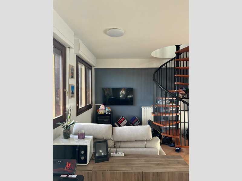 L'appartamento si compone da zona living con angolo cottura e tre ampie finestre che rendono luminosa tutta la zona giorno, camera matrimoniale alla quale si accede da scala a chiocciola, terrazza vivibile con vista Duomo e bagno con box doccia.