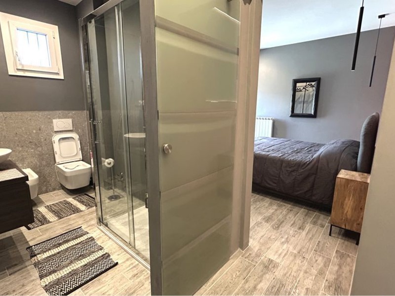 Il bagno segue le linee armoniose e le tinte del resto dell’abitazione con finestra e ottime rifiniture, sanitari sospesi, scalda salviette e box doccia vetrato.