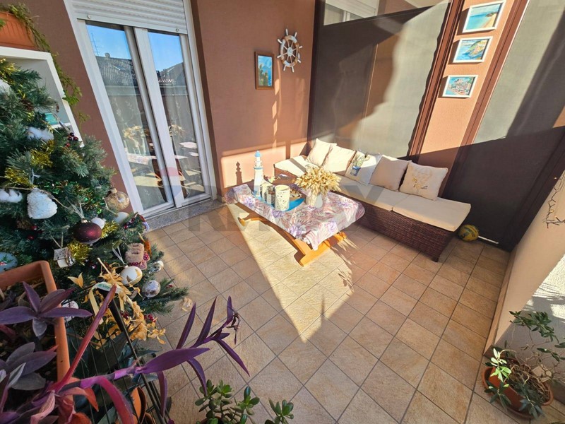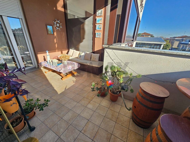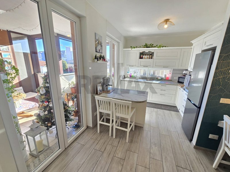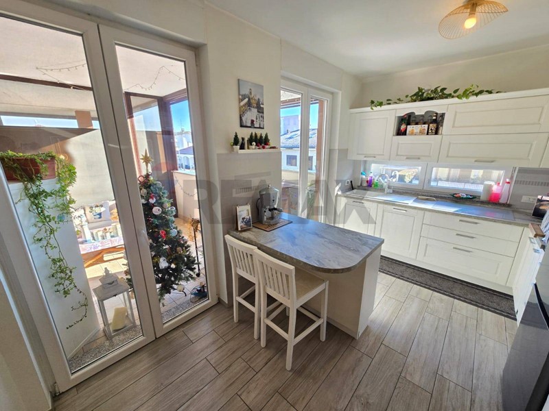 ingresso diretto nella luminosa zona living con cucina a vista servita da un fantastico e vivibile terrazzo, perfetto per godersi momenti di relax o pranzi/cene in compagnia, grazie anche alla presenza di zanzariere perimetrali motorizzate e alla posizione riparata. La zona giorno dispone inoltre di un bagno finestrato dotato di box doccia, con accesso al terrazzo ed è inoltre valorizzata dallesposizione a sud-est che garantisce ottima luminosità durante tutta la giornata. La zona notte, separata da disimpegno, offre una comoda camera matrimoniale con elegante cabina armadio e con accesso al secondo balcone, dove presente un pratico mobile su misura con angolo lavanderia, proseguendo troviamo una camera singola con doppia finestra oltre al secondo e funzionale bagno cieco con box doccia.