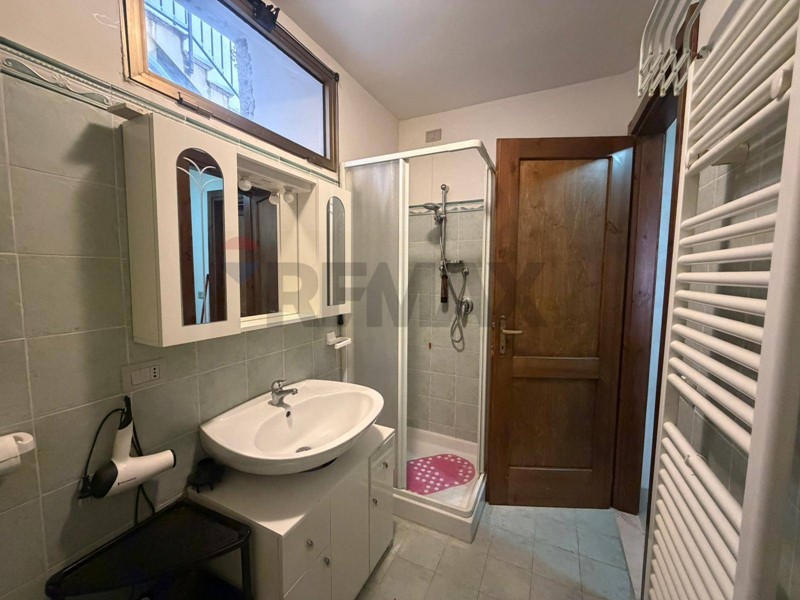 Il bagno è moderno e funzionale, dotato di tutti i servizi essenziali.