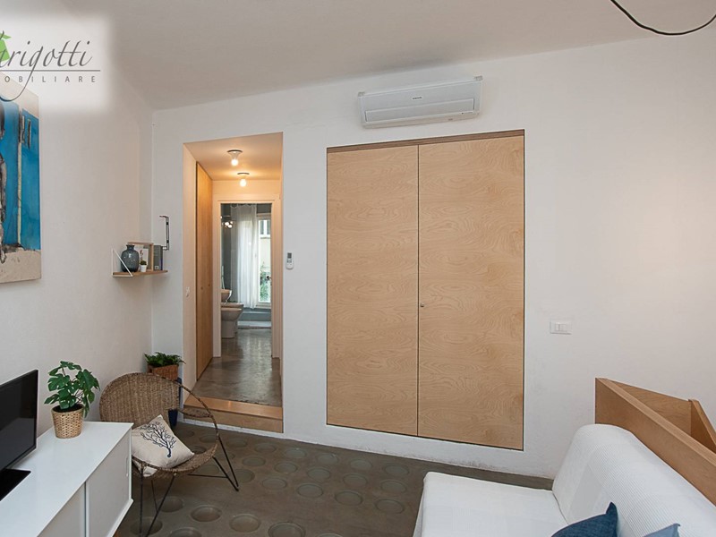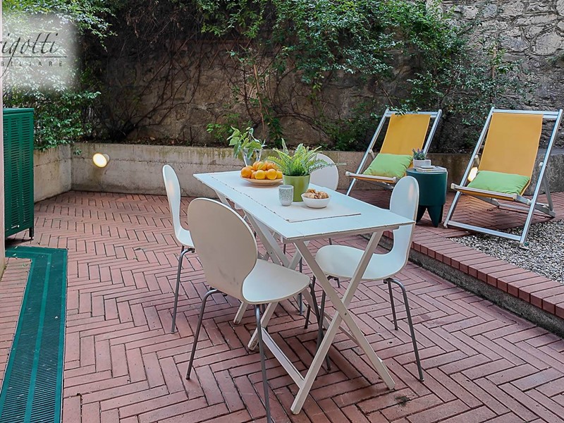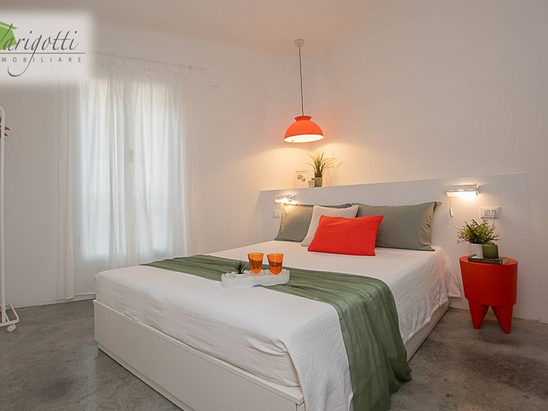 Al piano terra, un ingresso accogliente conduce a una camera da letto, un bagno moderno e una cucina con uscita su una corte privata di circa 50 mq, con un'area pavimentata in cotto e un'incantevole zona verde arricchita da un aranceto, perfetta per godere di momenti di relax all'aperto.
