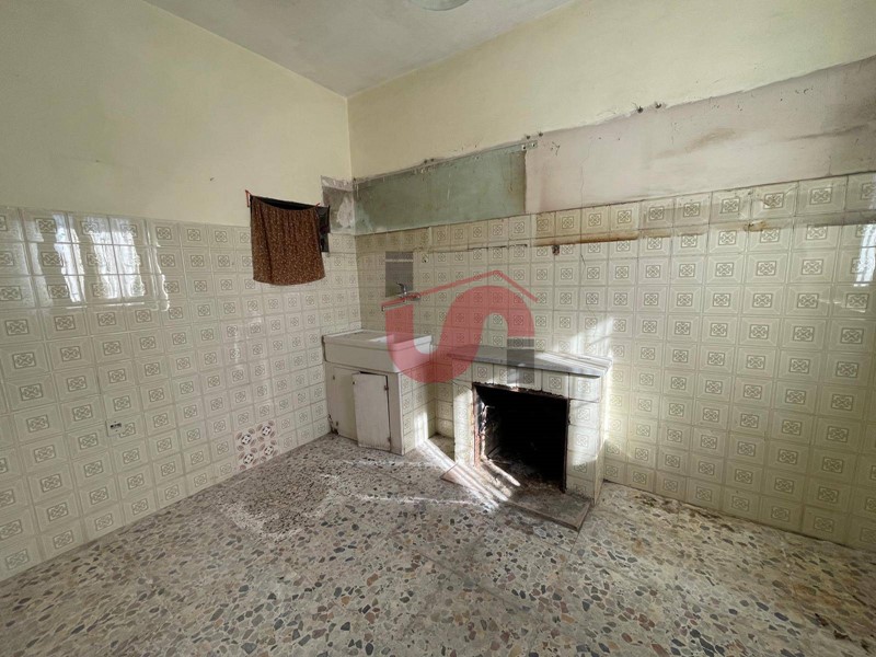 La casa è disposta su due livelli di cui uno al piano terraneo e l'altro al piano seminterrato e dispone di 8 stanze complessivamente, allo stato utilizzate in forma promiscua ; un ingresso, 3 camere da letto, un salone un bagno, un ripostiglio al piano terraneo più ulteriore bagno, 2 cantine contigue, un tinello, una sala da pranzo e 2 cucine al piano seminterrato.