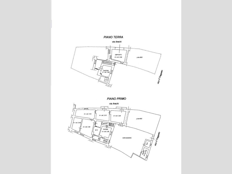 All'unità principale si accede da Vico Trappeto tramite ingresso autonomo dove troviamo un ampio cortile di 90mq ca in parte giardino e in parte pavimentato con annesso deposito, bagno e terrazzo sovrastante che garantisce una gradevole vista. L'appartamento, di 100 mq circa interamente, si compone di ingresso, cucina con ripostiglio, salone, quattro camere, bagno, balconi oltre ampia cantina la piano seminterrato.