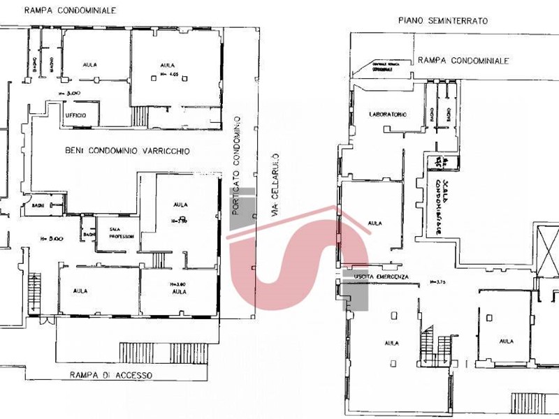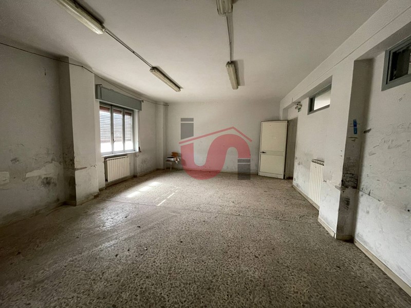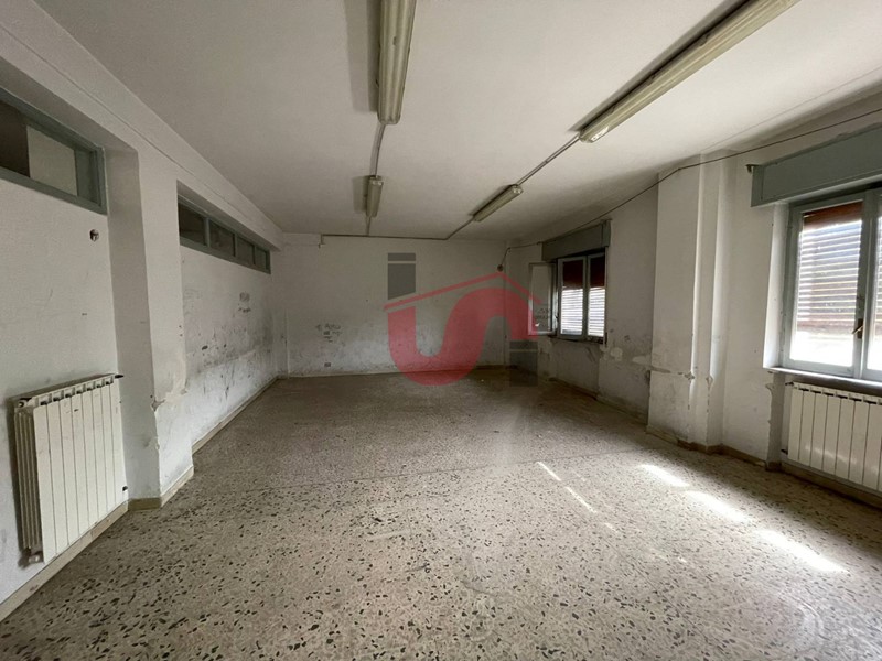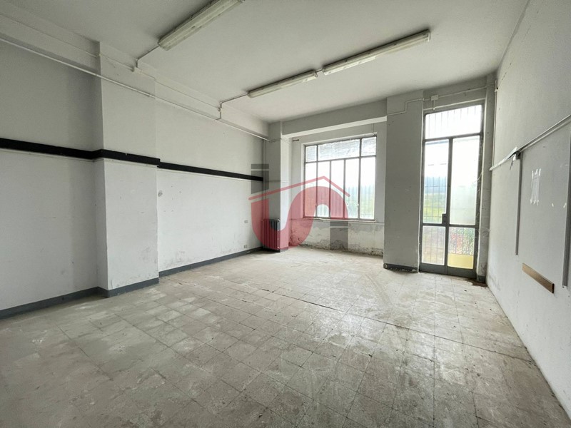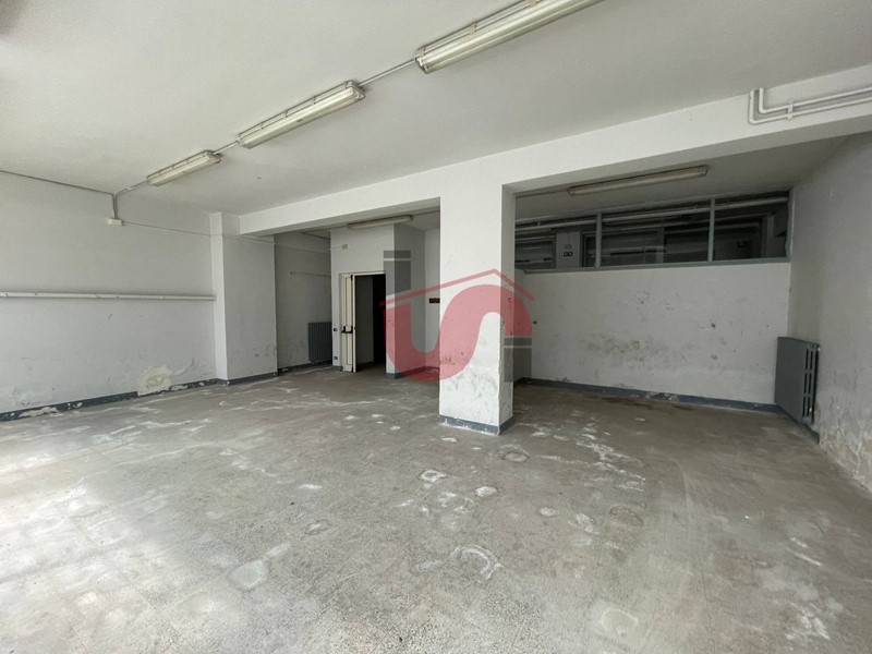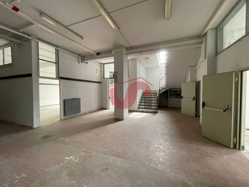 L'immobile è composto da piano terra di mq 870 circa, con accesso attraverso una rampa pedonale e un porticato, suddiviso in n. 10 vani oltre 3 wc e deposito con 5 porte/vetrine direttamente sul fronte strada; piano seminterrato di mq 760 circa, con accesso sia mediante ampia scala interna con gradini in marmo collegata al piano sovrastante che da una rampa di scale esterna in mattoni, composto da n. 5 vani oltre 2 bagni ed un ampio deposito. Ad entrambi i piani sono ubicate uscite di sicurezza dotate di maniglione antipanico.