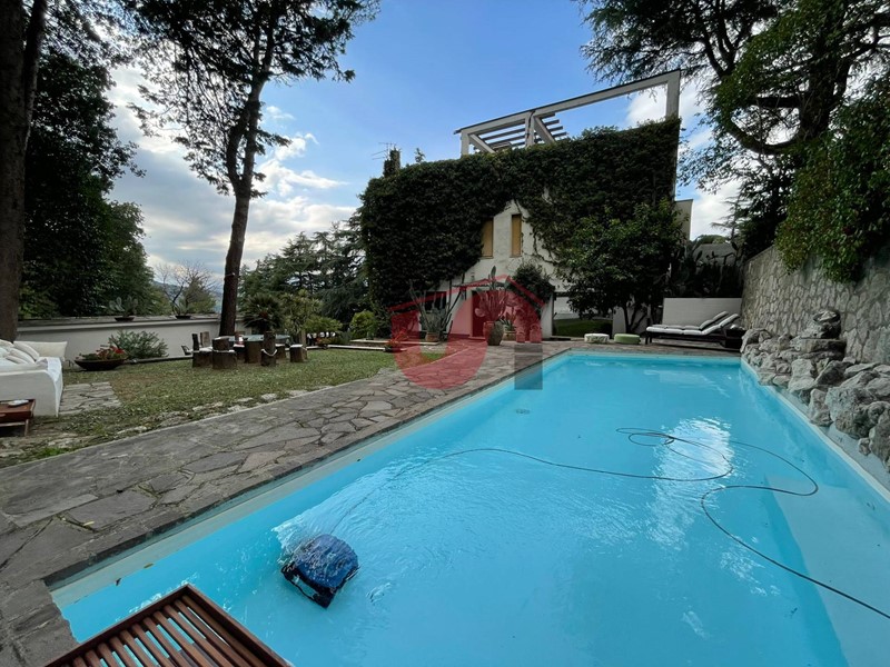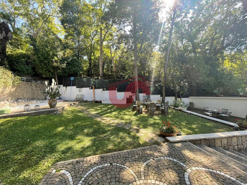 L'imponente giardino allinglese, di circa 3.000 mq è curato ed arricchito da alberi di alto fusto e da alberi da frutto, qui troviamo un ampia piscina idromassaggio (costruita nel 2020) ed un garage di circa 40 mq.