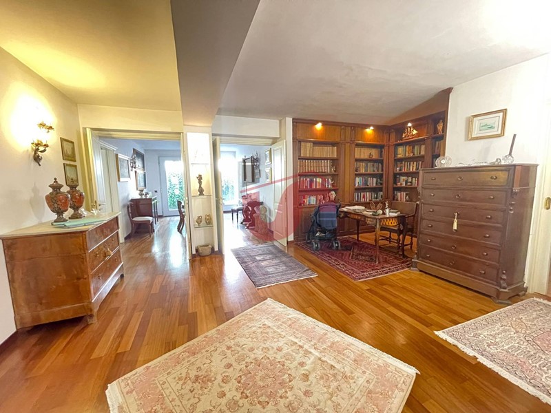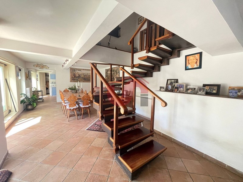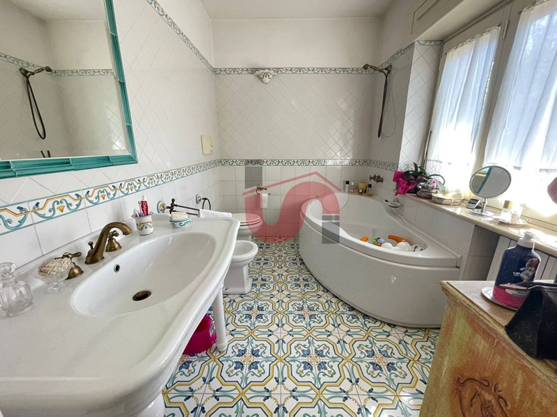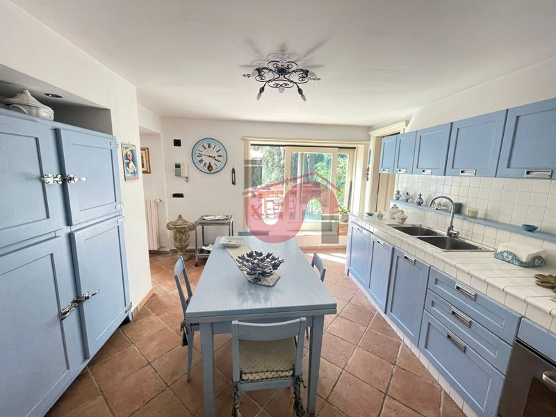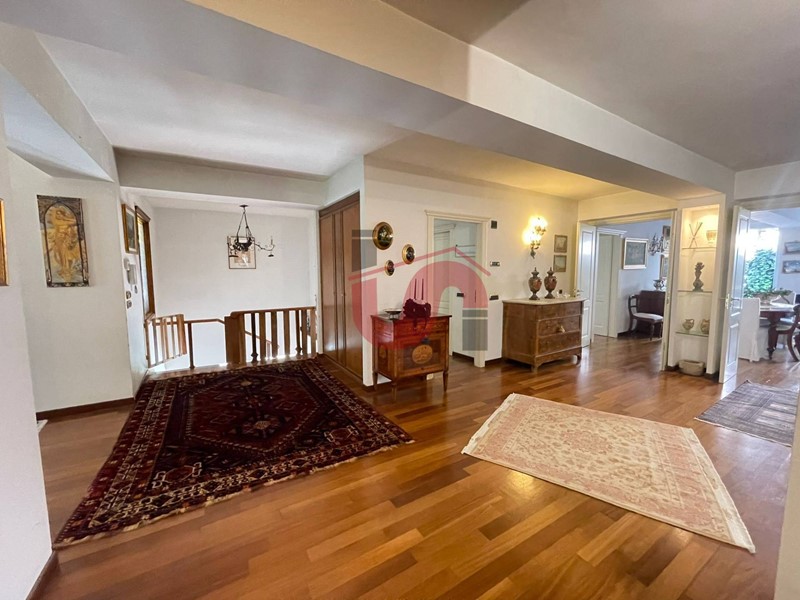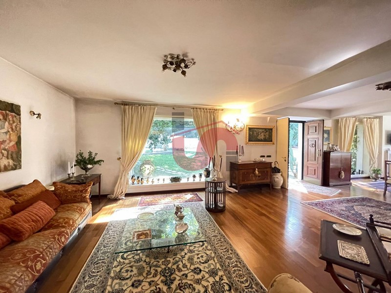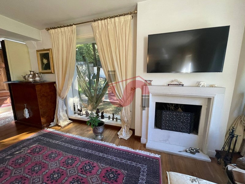 Al piano sottostante, dove si accede anche tramite scala interna in legno massello, si sviluppa la zona a servizio diretto del rigoglioso giardino composta da salone doppio con camino, cucina tinello, bagno padronale con vasca e ripostiglio.