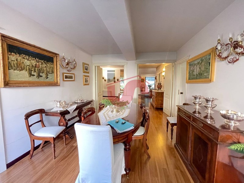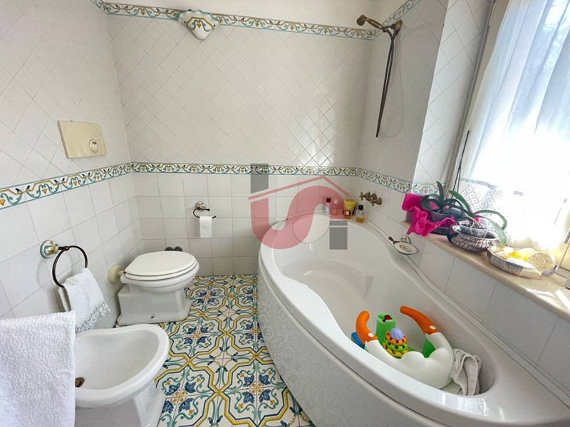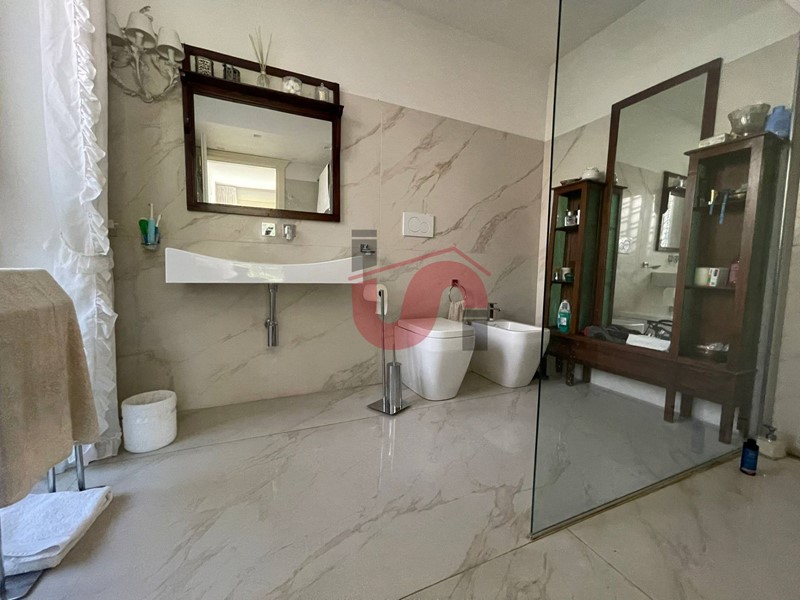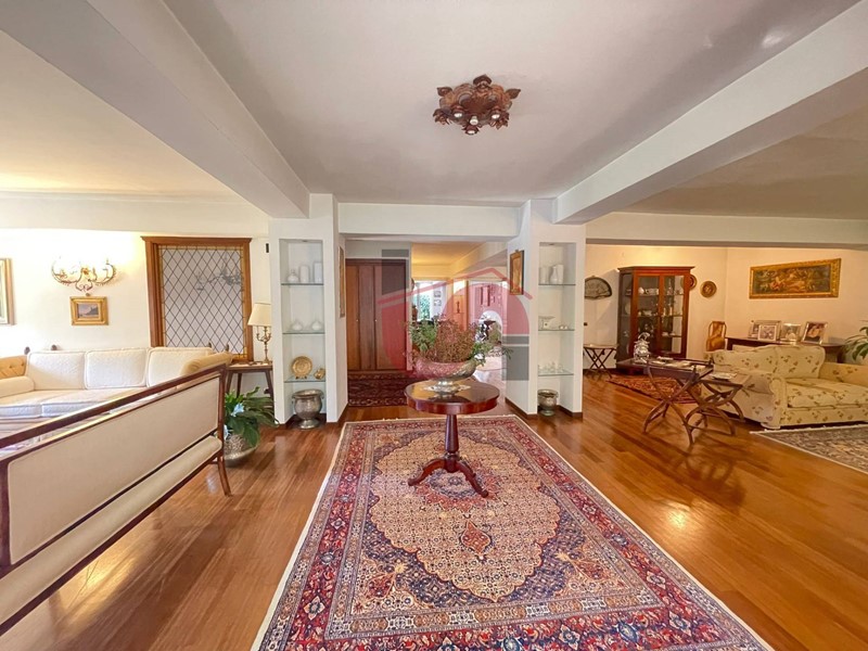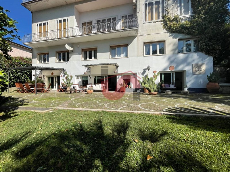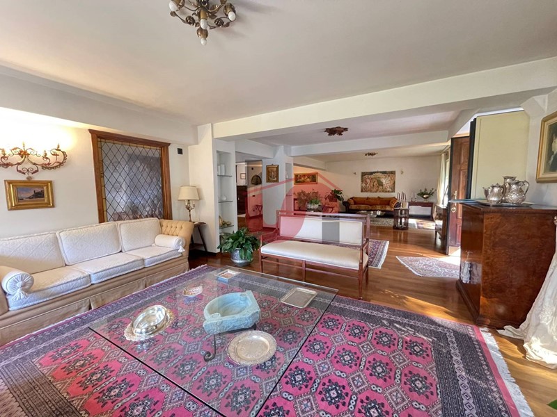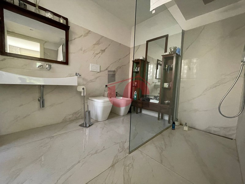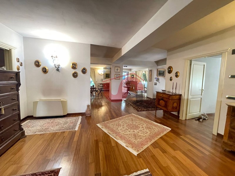 Al piano sottostante, dove si accede anche tramite scala interna in legno massello, si sviluppa la zona a servizio diretto del rigoglioso giardino composta da salone doppio con camino, cucina tinello, bagno padronale con vasca e ripostiglio.
