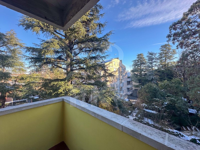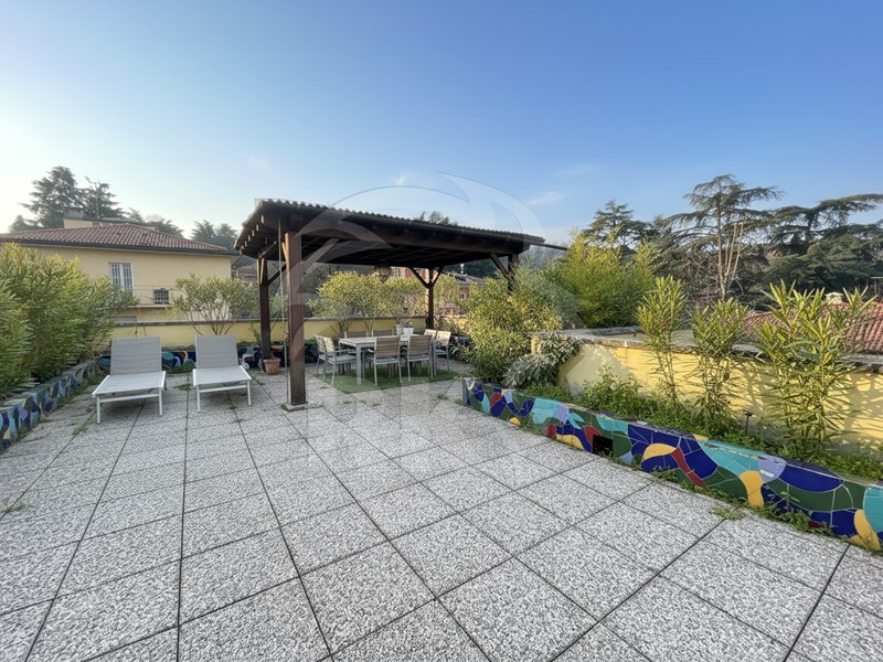 PARTE INTERNA Sito al 3° ed ultimo piano servito da ascensore, l'appartamento è un ampio pentalocale, di circa 155 mq, composto da: ingresso, sala con camino ed ampio balcone di 10 mt, cucina abitabile con secondo balcone di 8 mt, tre camere da letto e due bagni. Il vero elemento distintivo è la terrazza di proprietà esclusiva di circa 165 mq posta sopra l'appartamento, che ne copre l'intera pianta. Questo spazio straordinario offre una privacy totale e una vista panoramica a 360° sul verde circostante. Completano la proprietà una comoda ed asciutta cantina. E' inoltre disponibile un garage doppio al piano seminterrato di 37 mq al prezzo di 150.000,00 euro All'interno del cortile condominiale sono presenti posti auto non assegnati.