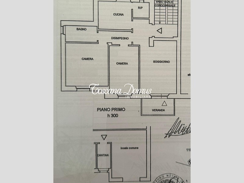 La zona notte si sviluppa in camera matrimoniale, camera doppia, bagno finestrato con doccia. Ampia Cantina.