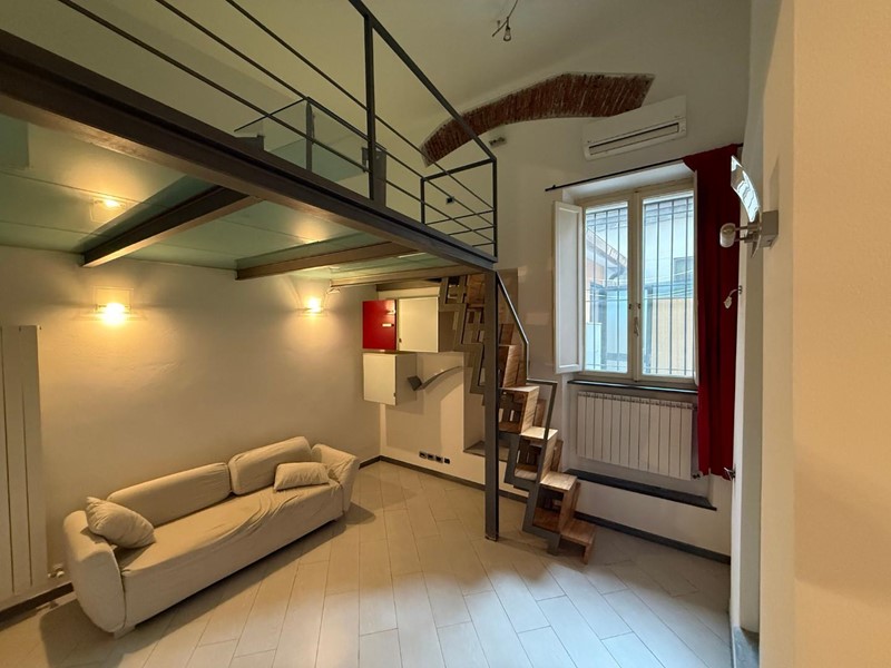 Appartamento completamente ristrutturato con rifiniture di pregio. L'immobile si compone da ingresso in soggiorno cucina con accesso a resede esterno fornito di locale tecnico lavanderia, ampio salotto con soppalco, camera matrimoniale e bagno. Arredato completamente con gusto e materiali ricercati. richiesta 1200 piu condominio.