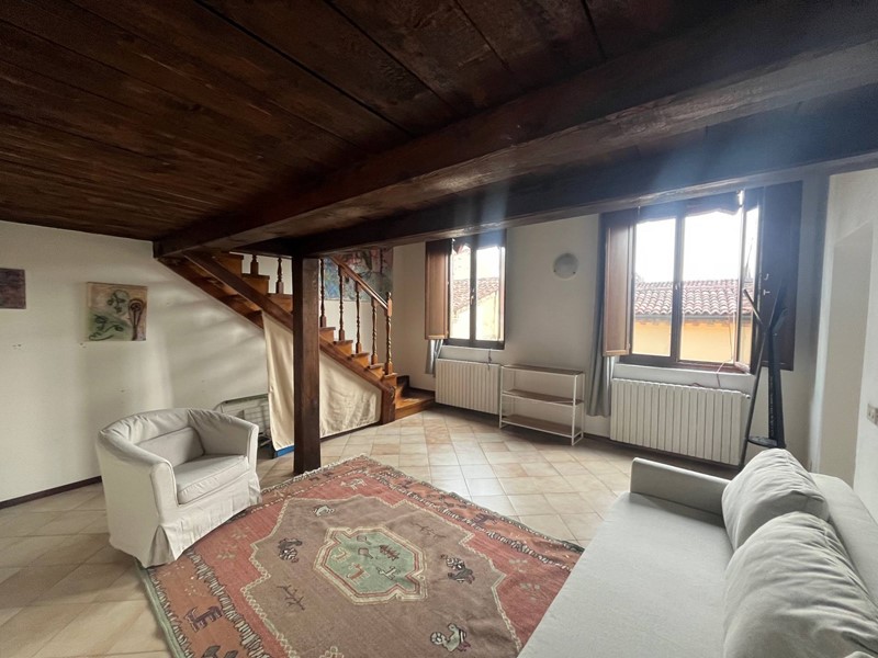 Sito al primo piano, bilocale arredato con soppalco composto da ingresso su cucina abitabile, soggiorno, zona notte su soppalco. Bagno con doccia.