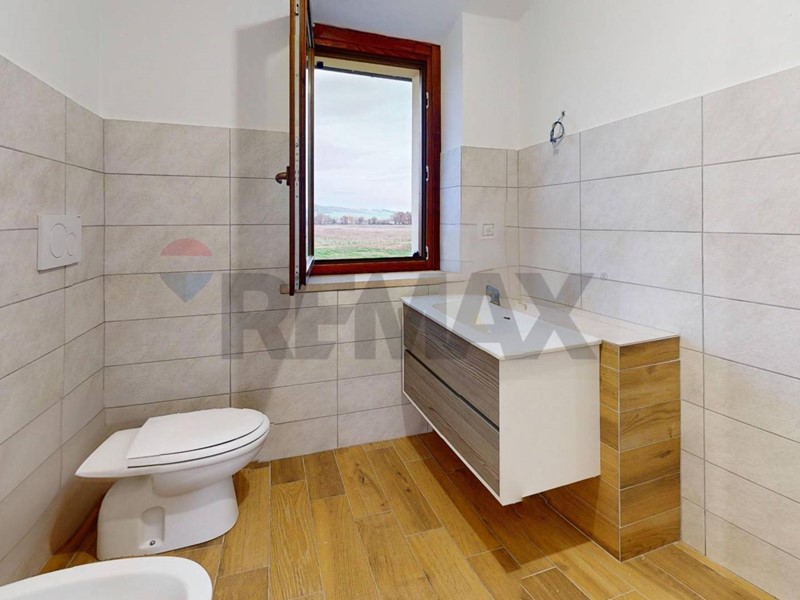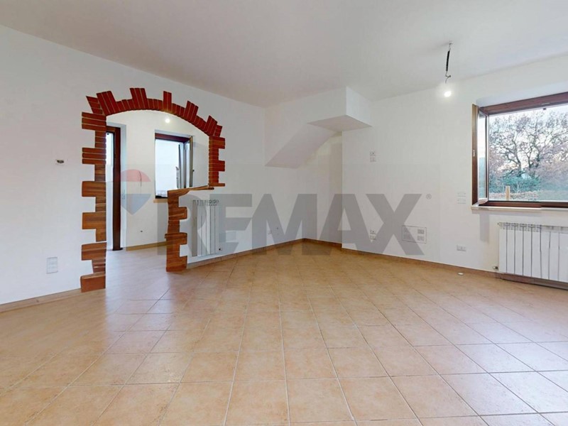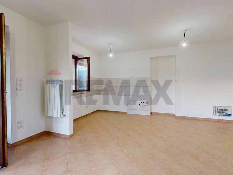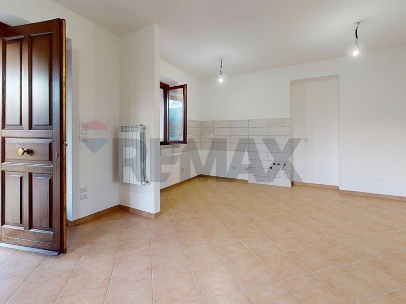 Ampia e luminosa zona giorno con cucina a vista, predisposta per canna fumaria per stufa a pellet o altro sistema di riscaldamento.