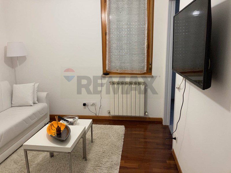 L'ingresso si apre su un soggiorno arredato, che gode di un'ottima esposizione solare grazie alle ampie finestre presenti.