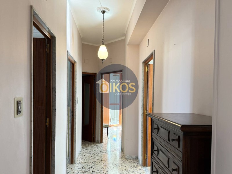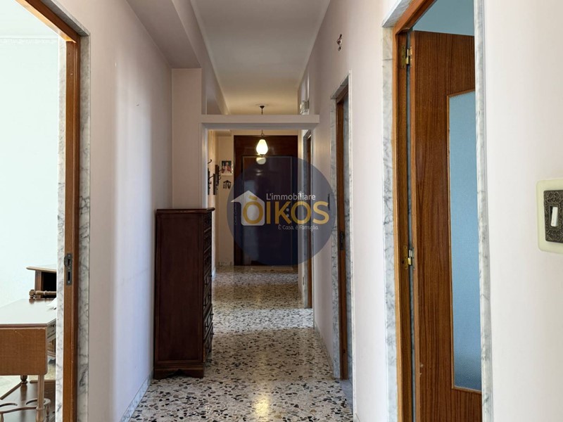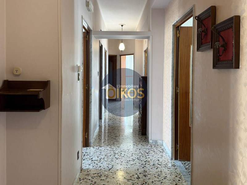 Aprendo la porta ci accoglie un ampio corridoio da cui a raggera si dipanano le altre stanze, pronte ciascuna a raccontarci qualcosa. Lappartamento consta di tre ampie camere da letto, una cucina abitabile, una sala da pranzo ed un soggiorno, oltre ad un bagno, un ripostiglio, una veranda ed un balcone.