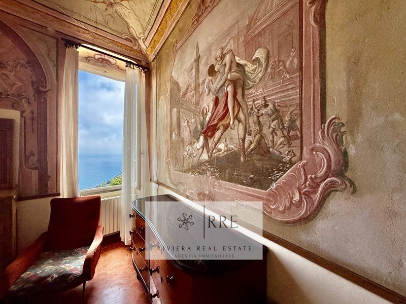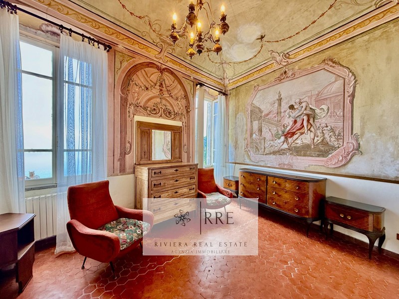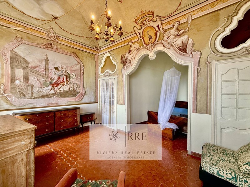 In vendita a Andora, nella prestigiosa zona di Rollo, si trova questo splendido quadrilocale situato al piano nobile di un palazzo storico risalente all'anno 1600, con soffitti a volte con decori a vista di altissimo valore storico e una vista mare mozzafiato.