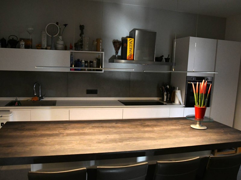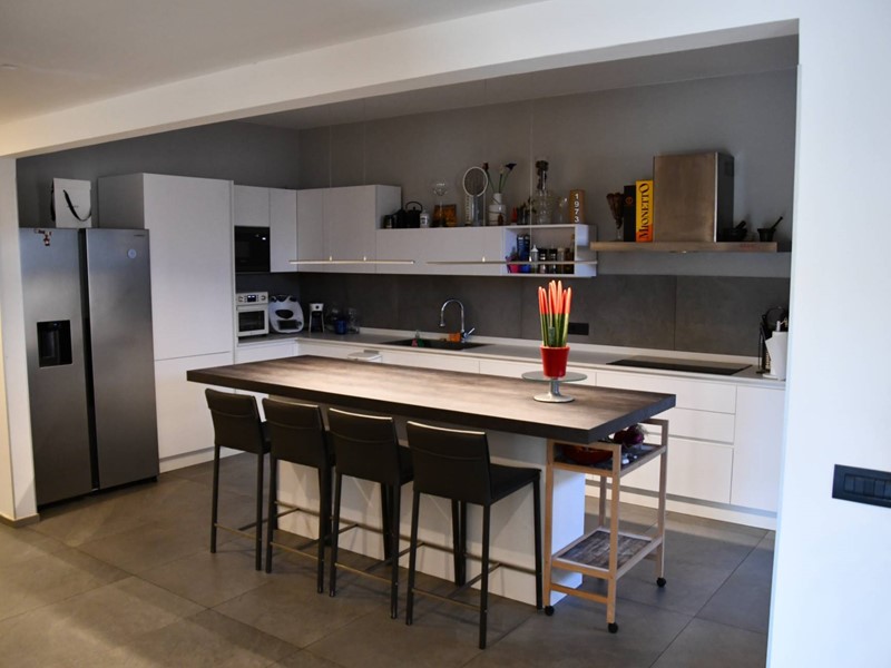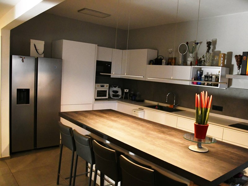 L'appartamento ha di proprietà piscina e posto auto scoperto.E' stato studiato con spazi moderni e funzionali.La zona giorno è composta da:bagno ospiti,salone pranzo,ampia zona cucina con grande isola funzionale e centrale;due ampie suite letto di cui una composta da zona letto,cabina armadio e bagno;l'altra da studio,letto e bagno.