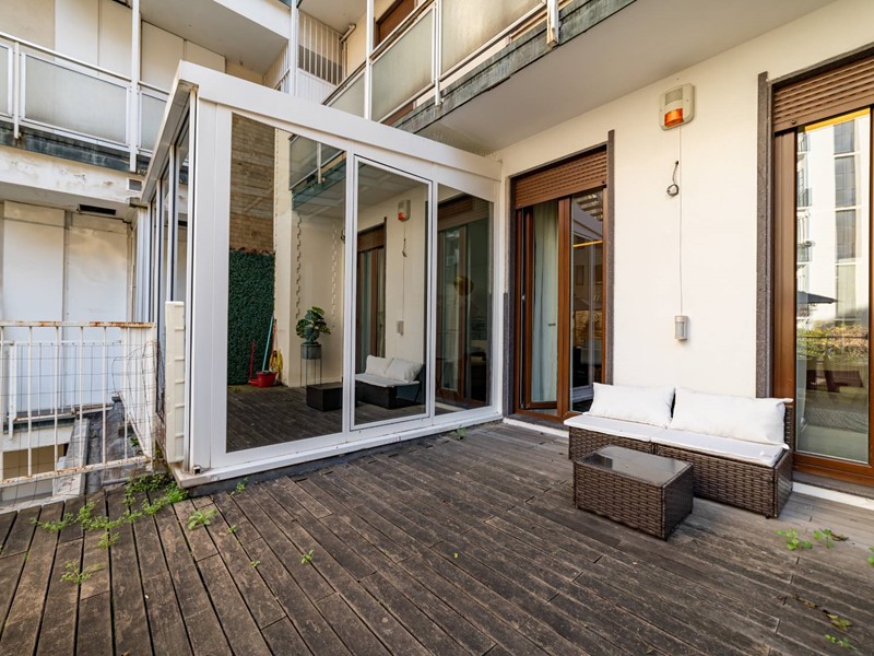 Lappartamento si compone di un luminoso soggiorno con cucina a vista che affaccia su un ampio terrazzo, una camera da letto matrimoniale, un affascinante giardino dinverno ideale come studio o sala lettura luminosa e accogliente, bagno finestrato.