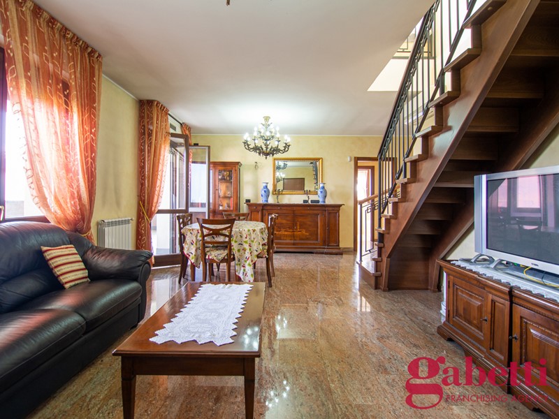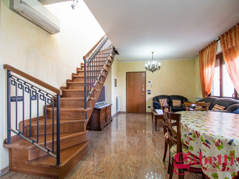 L'attico si presenta in ottime condizioni, con finiture di capitolato, aria condizionata, impianto di allarme e materiali di qualità che conferiscono eleganza e comfort all'intero immobile.