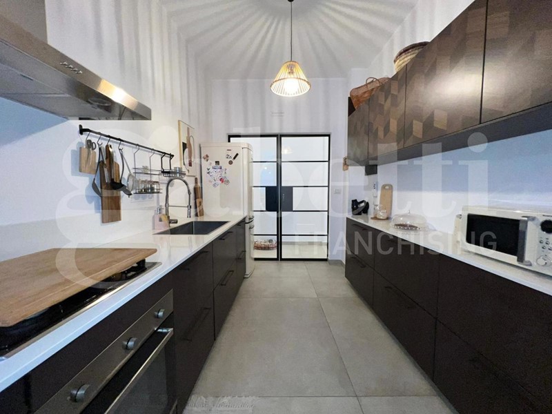 L'appartamento, ha una superficie interna di 116 mq, ed è stato completamente ristrutturato utilizzando materiali di pregio e adottando uno stile moderno.