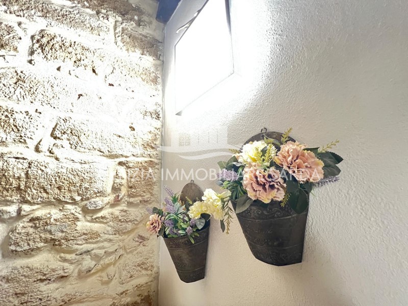 La ristrutturazione ha saputo valorizzare e conservare elementi storici di grande pregio, come l’antica porta d’ingresso, le travi in legno a vista e la caratteristica pietra delle pareti, conferendo all’ambiente un’anima calda e autentica. La cura dei dettagli esalta l’unicità dell’immobile, creando un perfetto equilibrio tra tradizione e comfort.