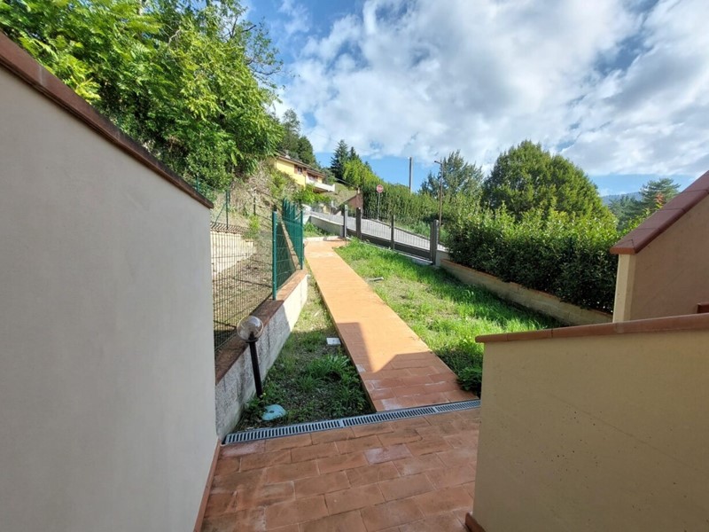 In zona residenziale e nel verde disponiamo in piccolo complesso immobiliare di recente costruzione, porzione immobiliare posto al piano primo ed ultimo con ingresso indipendente e giardino privato; così composto: ampio e luminoso soggiorno con accesso al terrazzo abitabile, cucina con accesso al terrazzo, camera matrimoniale, camera singola, servizio. Completano la proprietà due ampi garage. immobile pari al nuovo, mai abitato.
