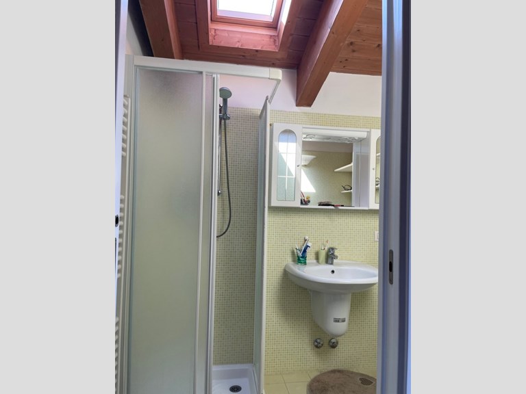 Ampia scala comoda in legno per salire al quinto piano mansardato dove troviamo un’ampia camera letto con due letti singoli ed armadio, un bagno finestrato, ampio balcone con comodo terrazzo vista mare completo di tavolo e sedie.