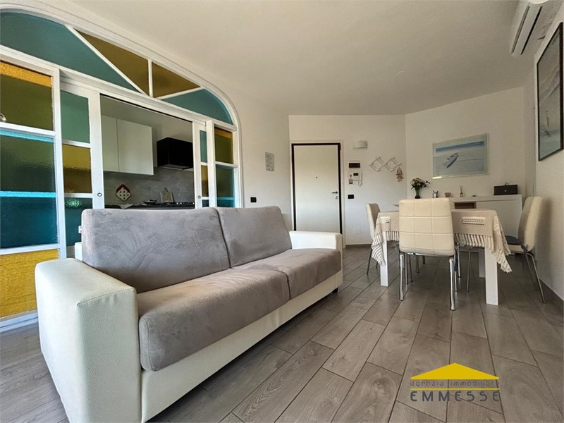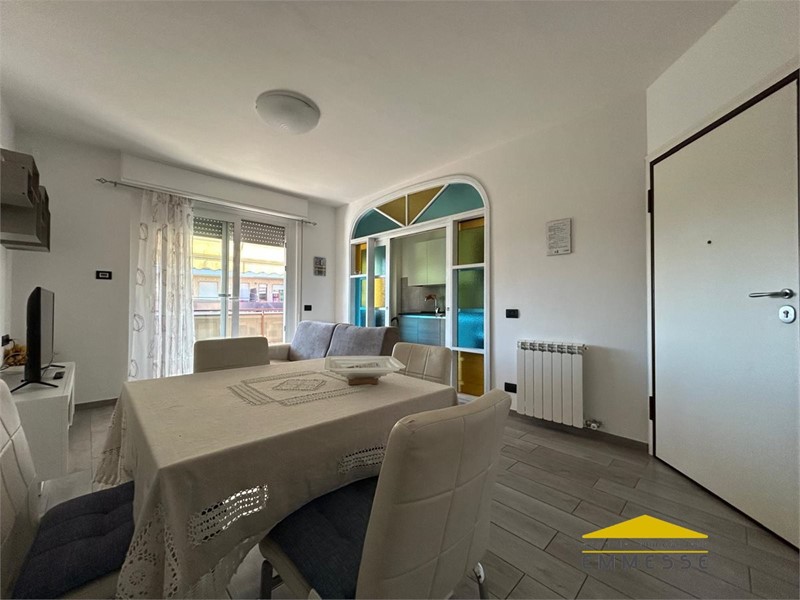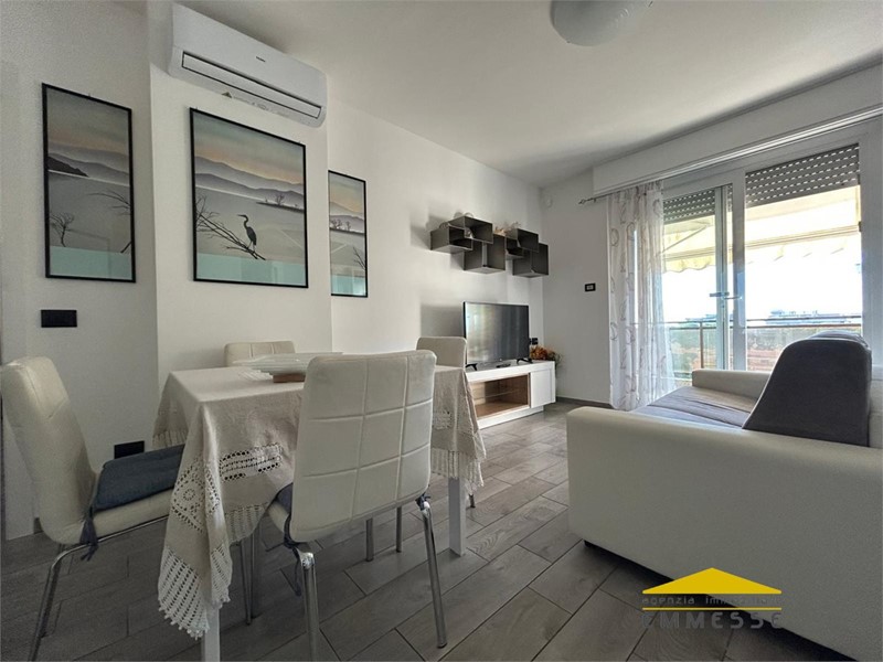 In una delle zone più ambite di Marina di Carrara, a soli 500mt dagli stabilimenti balneari, si vende appartamento con vista mare, ristrutturato completamente a nuovo e ottimamente rifinito.\nInserito in un contesto condominiale ordinato e perfettamente mantenuto, l'immobile risulta servito di ascensore, riscaldamento autonomo e impianto di climatizzazione su ogni ambiente.\nAccedendo dal portoncino blindato si apre l'ampia zona giorno costantemente illuminata dalla grande vetrata scorrevole che ci collega alla terrazza pranzabile, il cucinotto è riservato e protetto da una vetrata colorata anch'essa munita di ante scorrevoli. Dal disimpegno si accede al bagno corredato di doccia ed all'ampia camera matrimoniale collegata anch'essa direttamente alla terrazza.\nUn'area esterna condominiale adibita a parcheggio oltre a limitrofe zone pubbliche facilitano la sistemazione della propria auto.\nL'immobile viene ceduto completamente arredato.\nRichiesta euro 240.000\nPer appuntamenti od ulteriori dettagli s'invita ad un contatto diretto telefonico al numero : 3472344249 \n- Agenzia Immobiliare EMMESSE con sede in Massa (MS) via Democrazia n.82 - Maggiori Dettagli: Porta blindata, Aria condizionata, Infissi vetrocamera