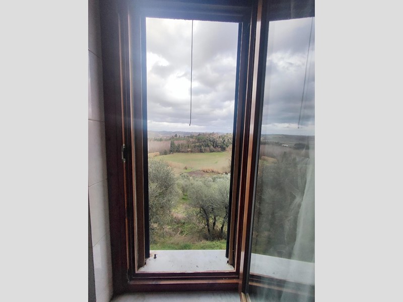 e composto da ingresso-soggiorno, ampia cucina con camino, disimpegno notte, bagno e 2 camere con bellissima vista panoramica sulle colline toscane. Completano la proprietà un piccolo resede esterno e due cantine.