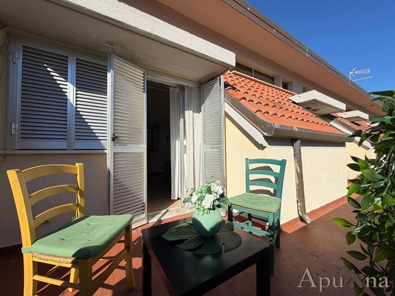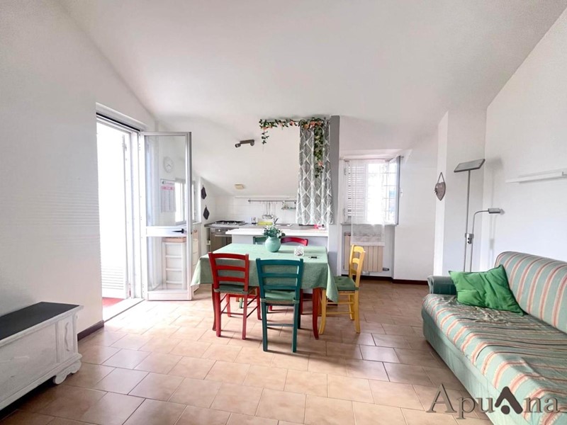 Marina di Massa, in posizione strategica e di sicuro interesse, comoda al mare ed al centro, in zona servita , Graziosa mansarda abitabile di comoda metratura, posta al secondo ed ultimo piano con accesso indipendente da scala esterna. Internamente si compone di ingresso, disimpegno, soggiorno con angolo cottura, camera matrimoniale, cameretta e bagno finestrato con box doccia. Ampia terrazza pranzabile perimetrale per tutto l'appartamento. Molto luminosa grazie alla tripla esposizione. La mansarda si presenta in buono stato di manutenzione, pronta per essere abitata. Aria condizionata. Basse spese di gestione condominiale. Impianti autonomi. Posto auto su area condominiale.
