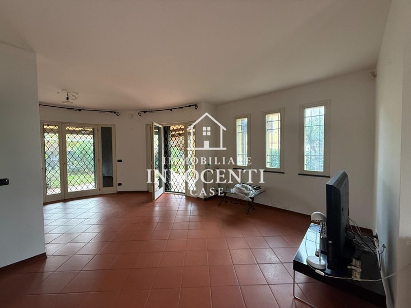 Al piano terra l’ingresso principale conduce nella luminosissima zona giorno, caratterizzata da un ampio soggiorno con grandi aperture che garantiscono luce naturale in ogni momento della giornata. Le porte-finestre permettono l’accesso all’esclusivo portico, ideale per pranzi e cene all’aperto durante la bella stagione.