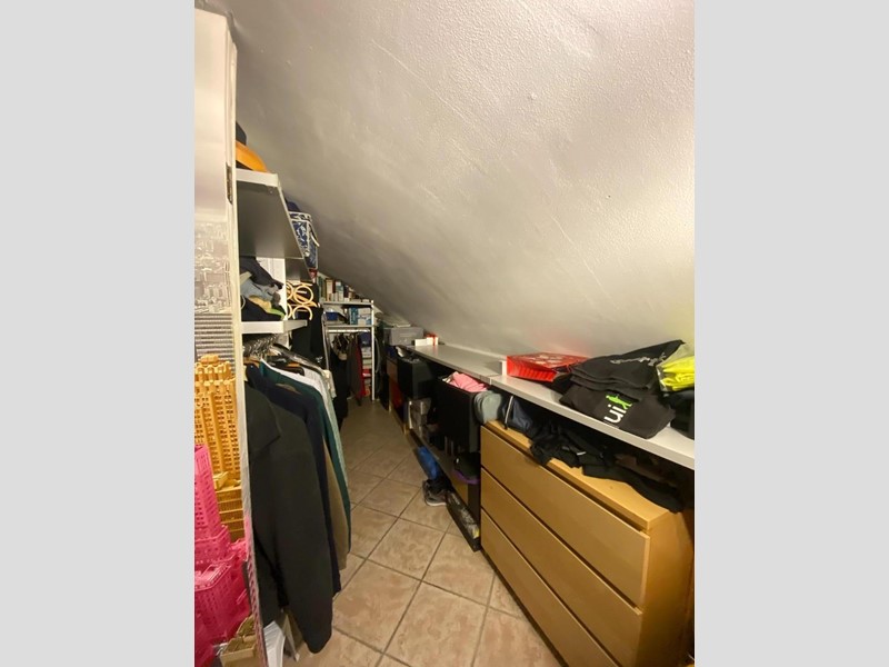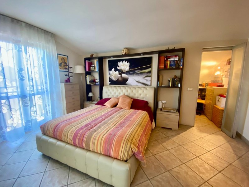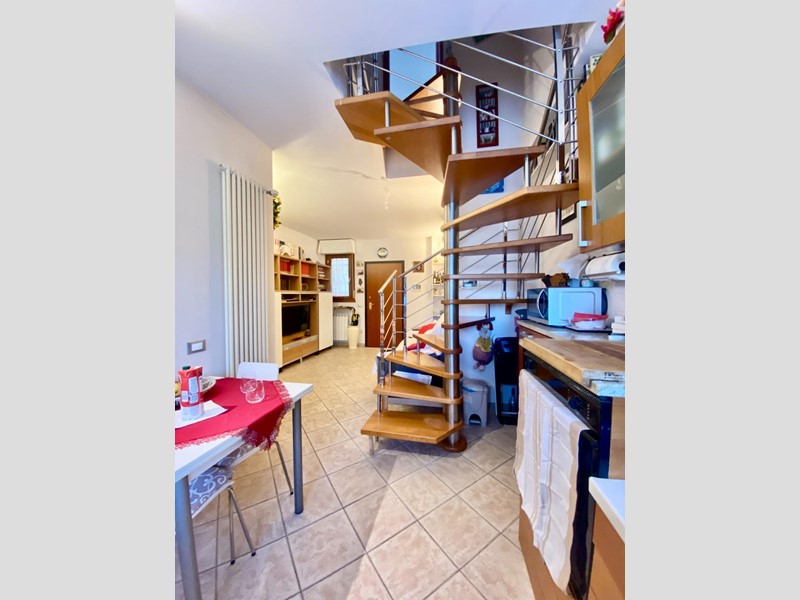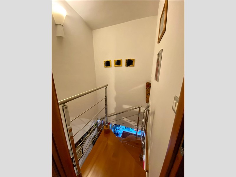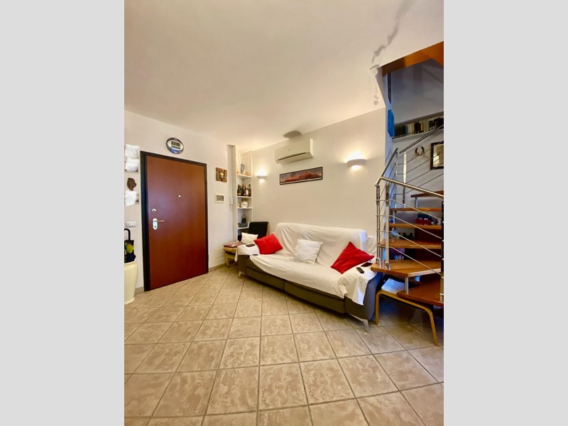 L' immobile è composto al piano primo dall' ingresso nella zona soggiorno - pranzo con angolo cottura open space, disimpegno, camera e bagno finestrato con doccia; dalla zona giorno si accede al piano superiore tramite scala a giorno in legno e acciaio alla zona sottotetto adibita ad ampia camera matrimoniale con guardaroba e terrazzo a tasca panoramico con ripostiglio con lavanderia. Completa la proprietà un posto auto esclusivo parzialmente scoperto.