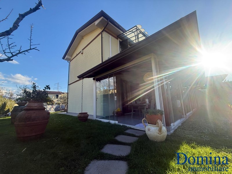 Elegante Villetta a Schiera in Zona San Lorenzo – Immersa nella tranquillità e nel verde, in una delle zone più ricercate di Massa, proponiamo in vendita questa elegante villetta a schiera, disposta su tre livelli e perfetta per chi cerca un ambiente sereno e raffinato. La proprietà, ben organizzata e curata nei dettagli, offre ampi spazi e la possibilità di godere di un comfort assoluto. Al piano terra troviamo un ampio soggiorno e una cucina a vista, un ambiente aperto e luminoso che crea un’armonica continuità tra gli spazi interni. Completa il piano un bagno di servizio, con accesso diretto alla veranda, ideale per pranzi e cene all'aperto, e al giardino che si sviluppa su due lati, perfetto per godere delle giornate di sole o per momenti di relax. Al piano primo sono situati due comodi ripostigli, due camere da letto e un bagno, offrendo una zona notte confortevole e funzionale. Al piano seminterrato, un'ampia taverna con camino aggiunge un ulteriore spazio ideale per socializzare, rilassarsi o ospitare gli amici. La proprietà dispone di un giardino privato dove è possibile parcheggiare fino a due auto, mentre due ulteriori posti auto sono disponibili nell'area condominiale protetta. Questa villetta rappresenta un’opportunità unica per chi desidera vivere in un contesto verde e tranquillo, senza rinunciare alla comodità e alla qualità della vita. Perfetta per famiglie, è anche una scelta ideale per chi cerca una casa spaziosa e ben posizionata.
