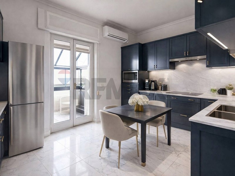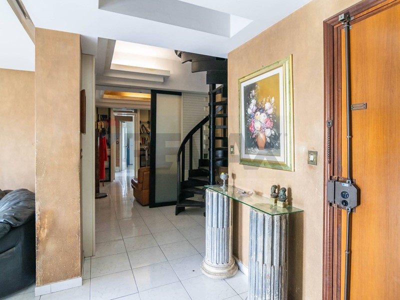 Lappartamento, costruito intorno al 1972, è situato al quarto piano di uno stabile servito da ascensore. È composto da 6 vani più accessori, per una superficie totale di circa 177 mq compresi di mansarda.