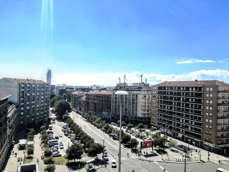 L'appartamento é parzialmente diviso in zona notte, angolo cottura, zona pranzo e zona divani. Doppia aria con affaccio su Piazza Carducci da una parte e sulla collina dall'altra.
