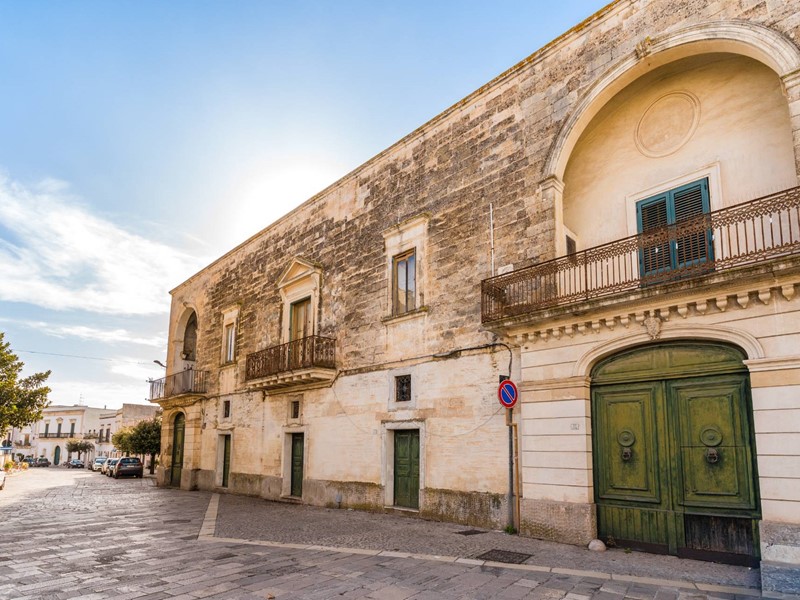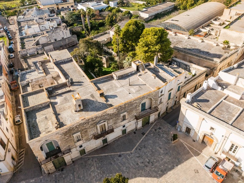 Affacciato sulla piazza principale, incastonato tra le vie più suggestive del borgo, il palazzo ha diversi ingressi, con i suoi oltre 2.000 mq coperti, 22 camere e 5 bagni, ampie terrazze panoramiche e un giardino interno da 1.455 mq che pulsa come un cuore verde e silenzioso.
