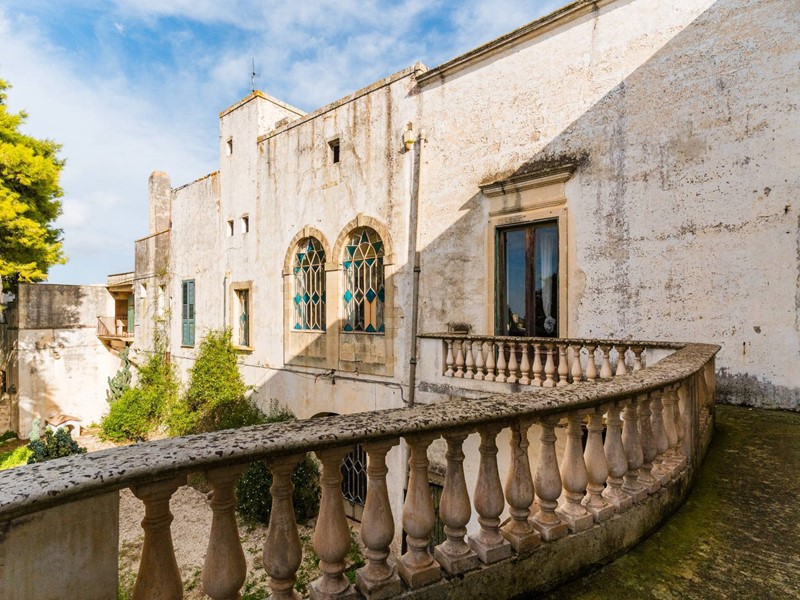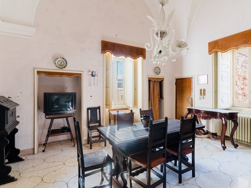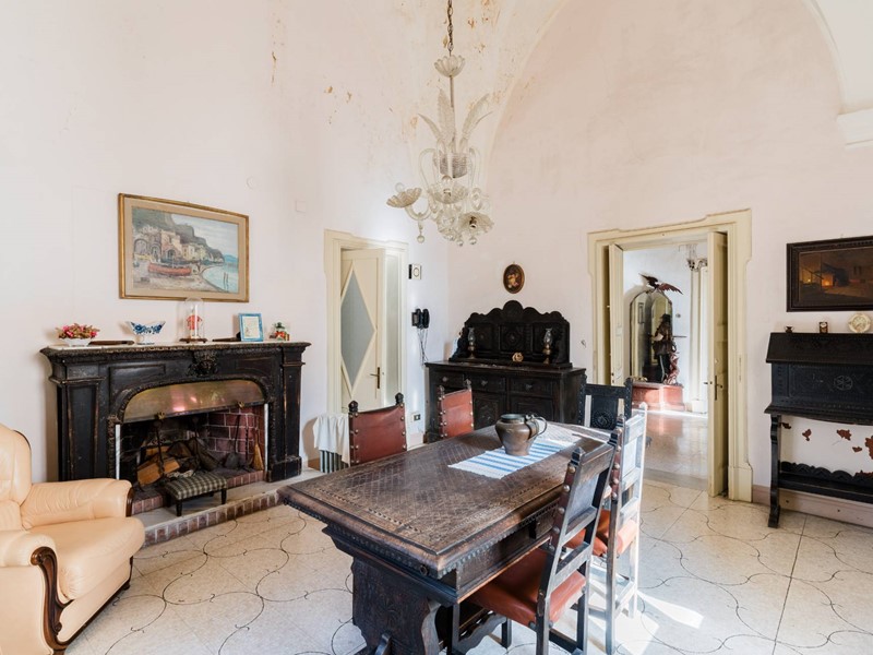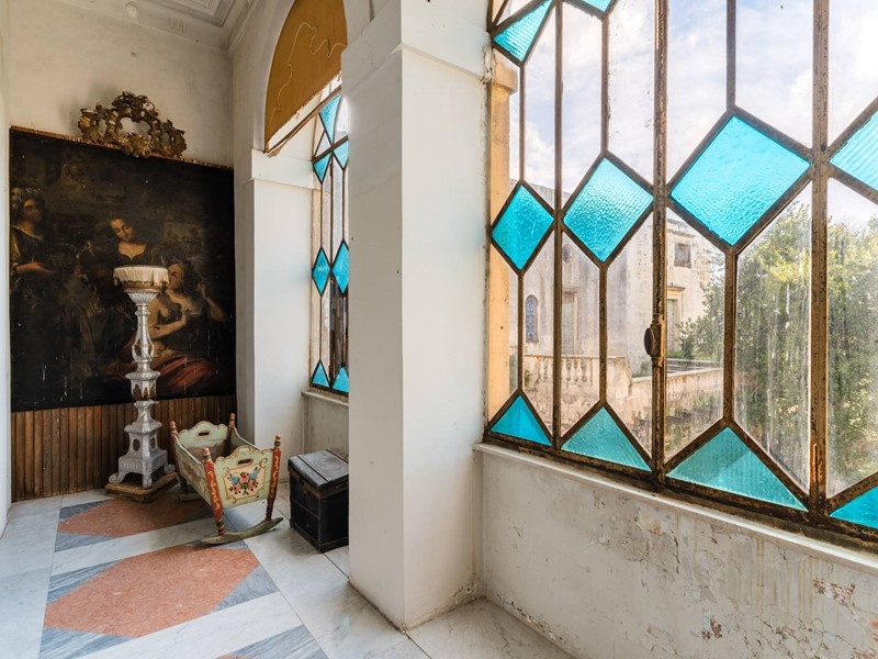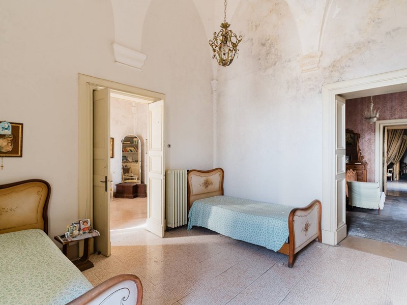 Tra gli ambienti di maggior pregio del piano nobile spiccano decorazioni pittoriche firmate da Pietro Della Gatta, artista originario di Galatina attivo nei primi anni del Novecento. La sua firma, datata 1931, è ancora visibile su uno dei dipinti, a testimonianza dellintervento di raffinata maestria che impreziosisce ulteriormente gli interni. Le sue opere si distinguono per la delicatezza dei colori, le composizioni eleganti e larmonia decorativa, in perfetta sintonia con lo stile nobiliare della residenza.